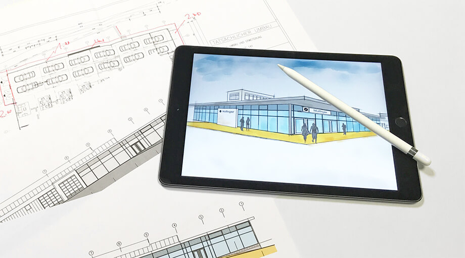 Entwurf, Konzeption, Visualisierung (2D/3D), klassische und digitale Zeichnung, Mockups, Layouts und Retusche.
